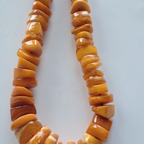 Rav halskæde. Farve som solen. Vægt 43 gram. Længde 33 cm.