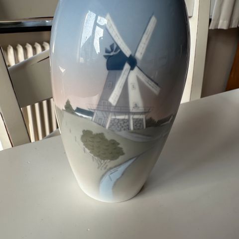 Bing & Grøndahl porcelænsvase med motiv af mølle.