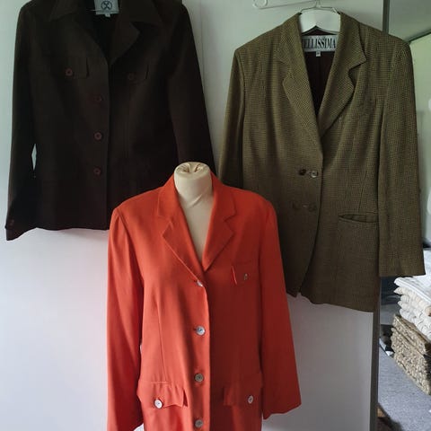 Har mange blazere / habitjakker / habitsæt i næsten alle farver og mange bukser der matcher blazerne.