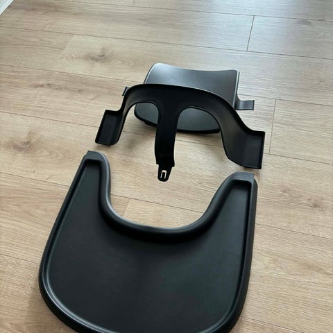 Stokke babyindsats og Tray bord, hvid eller sort sæt, til Stokke Trip Trap højstol. Pæn stand.