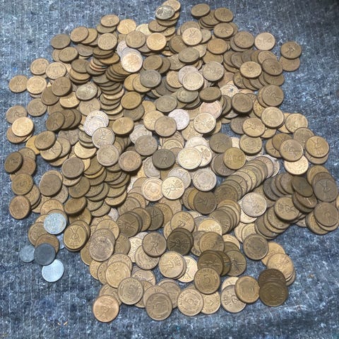 330 5-ører 1973-1988. 251 10-ører 1952-1988. Har været i cirkulation. Vægt 1300 g.