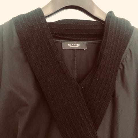 Sælger en marineblå GANT kjole i str xs med en brystlomme. Bindebåndet har ærme effekt. Se sidste billede. Lidt længere på venstre side L 102 cm og 82 cm på højresiden. Brystvidde 2x46 cm.