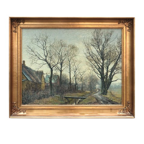 Oliemaleri, Ole Ring, motiv: Landskab, stil: Naturalistisk, b: 68 h: 63, Udsigt over Søndre Strand i Køge.