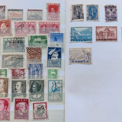 150+ ældre græske frimærker. Mest stemplet.