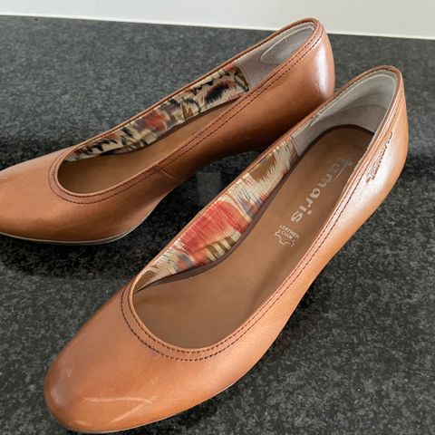 Sort lak med læder sål. Brugt en enkelt gang. 10 cm hæl og 1,5 cm plateau. Nypris 400kr
