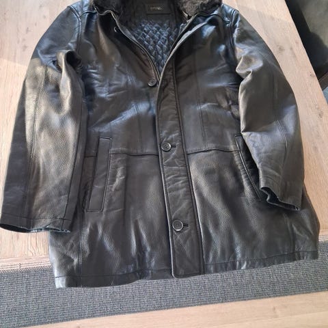 Fed skindjakke med emblemer str L . Ny