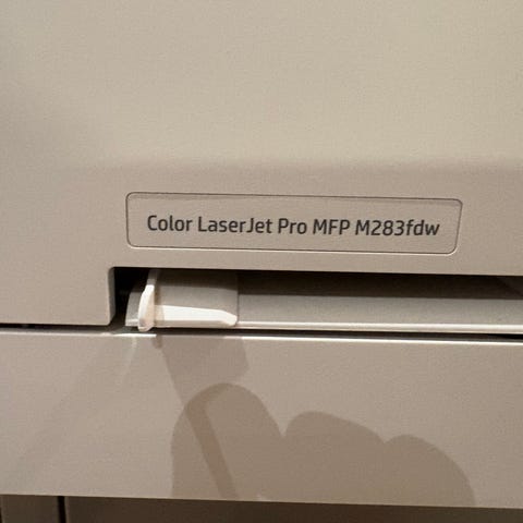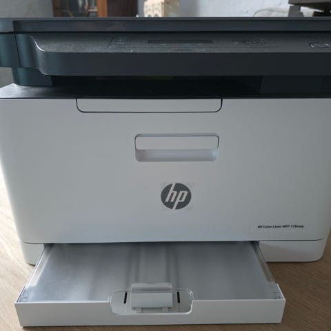 Sælger en HP Color LaserJet Pro MFP M282NW farveprinter med scanner som kan tilsluttes WiFi eller kablet netværk.