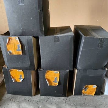 Terrassefødder. 1200 stk i alt i kasser.