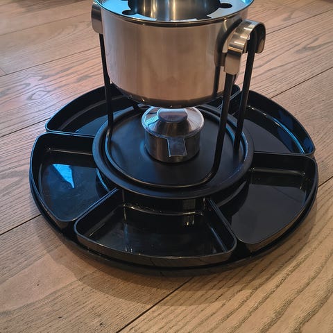 Stelton fonduesæt i rustfrit stål. Fremstår virkeligt flot og det er intakt med alle dele selv original kasse. Der medfølger 6 sæt gafler