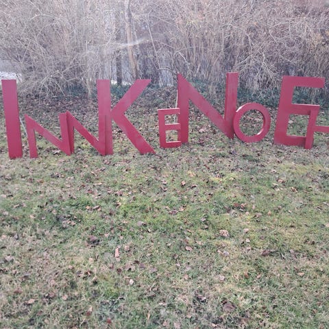 Tre bogstaver i stål, hver ca. 30x30 cm. Sælges samlet kr. 250.