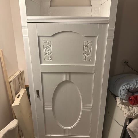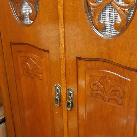 Antik skab med skuffer øverst