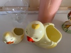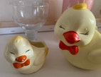 2 skønne påskekyllinger - til forårets blomster. Ingen afslag/revner eller andet. Dog har den mindste tabt noget af sin næb-farve. Prisen er for begge.
