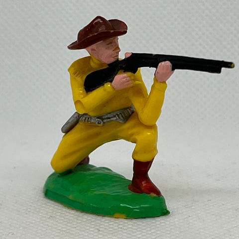 7) Cowboy, stående med gevær, højde 5,5 cm: 14 kr.