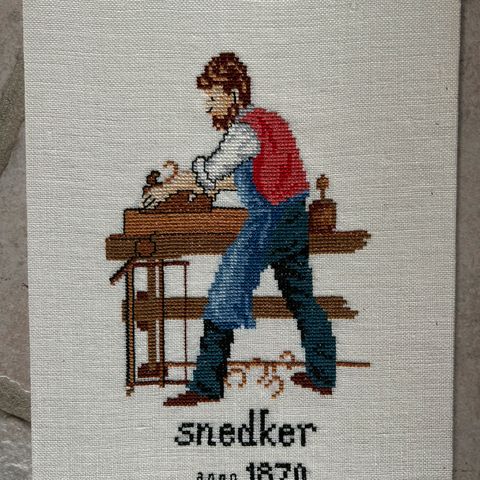 Broderi, Flot Anders And Retro Broderi Håndsyet og i Ramme H. 44 B. 30 cm.