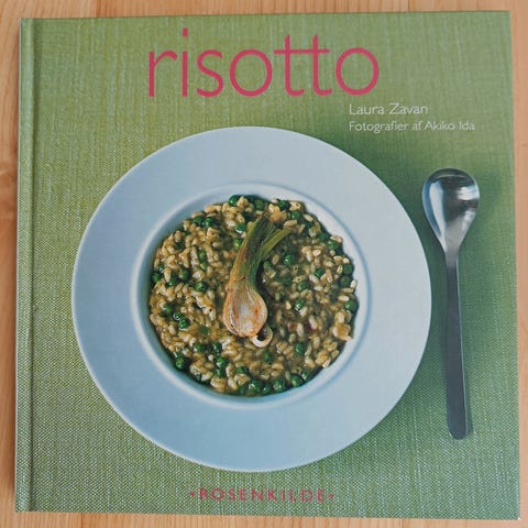 En udmærket og lettilgængelig bog om kunsten at lave risotto. Præsenteret fra bunden med tips og grundopskrift efterfulgt af 29 opskrifter på lige så mange opslag med opskrift på venstresiden, indbydende billede af den færdige ret på højre. Opskrifterne er opdelt efter sæson - forår med "lette" ting som fx ærter, artiskok, asparges, jomfruhummer, sommer: tomater, squash, men også jordbær og melon/citron, efterår med svampe, rødbeder, kødsovs og vinter de tungere ingredienser: pølser, kål, gorgonzola mv. Nogle af de traditionelle risottoretter har fået et lille twist