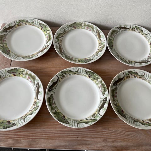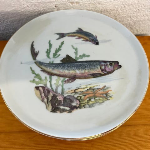 Porcelæn, Fisketallerkner, CP Colditz, Fisketallerkner med guldkant, stemplet CP Golditz. Er i rigtig god stand.
