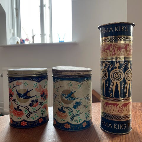Alle dåser har været brugt til fødevarer. Kan hentes kbh v eller sendes