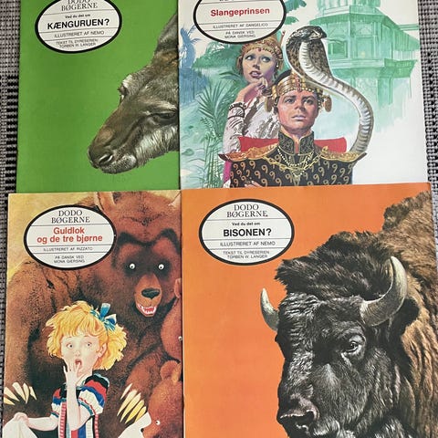 ‘Min ven, lille kanin’, ‘Den ensomme fru ugle’, ‘Den lille rødhætte, Prinsessen på ærten, De tre ønsker’, ‘Lille kanin og hunden strik’, ‘Plys på eventyr’, ‘Mariehønen Polly’, ‘Blomsterprinsessen’ og ‘Snap og snif på stranden’.