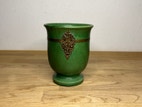 Smuk vase i grøn glasur med messing ornamentik fra Kähler.