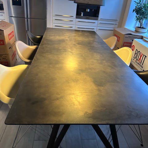 Egetræsplankebord, Lakeret finish. rengøres med en fugtig klud og sæbe uden farve.