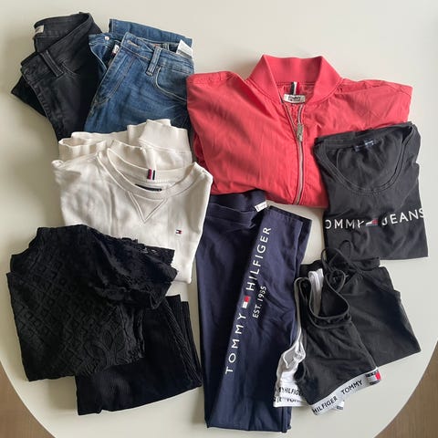 Str 152-164 5 stk Tommy Hilfiger toppe i bunden af det store billede.