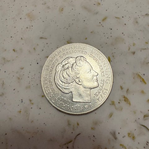 Tronskifte sølvmønt Frederik lX & Margrethe ll fra Nordfrim