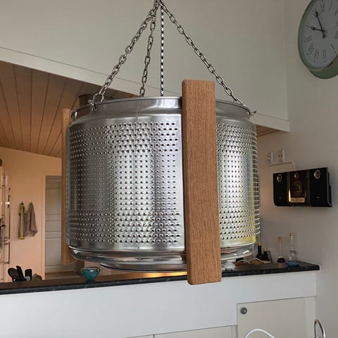 De mange små huller i tromlen giver flot varmt lys-spil på væggene.