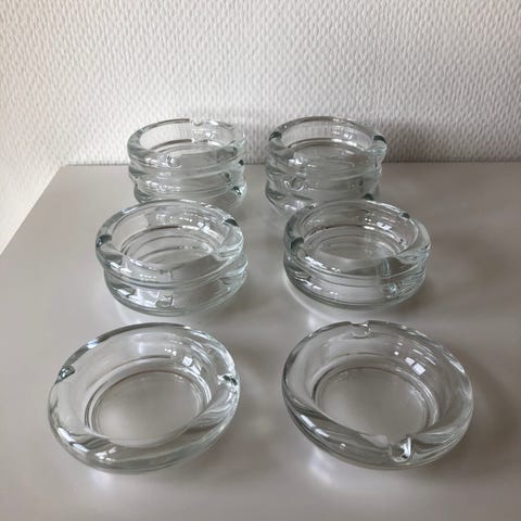 Smukke farvede kuvert askebægere i glas, som nu kan bruges til smykker.