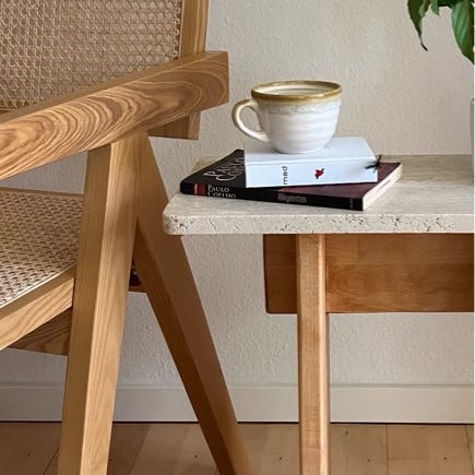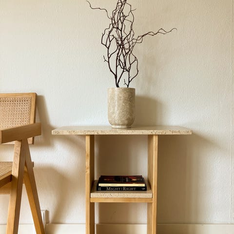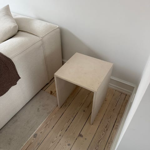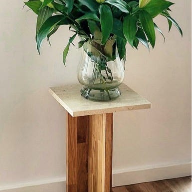 Sidebord i ægte Italiensk travertin kombineret med massivt eg.