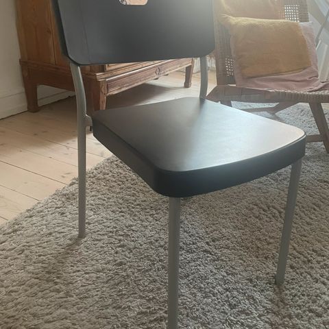 Spisebordsstol, 4 stk. sorte stole + 1 hvide stol. (Læs annonceteksten, tak).
