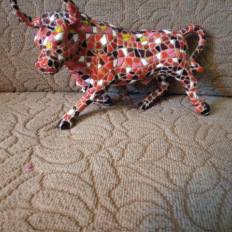 Tyr i porcelæn, mosaik. Figur