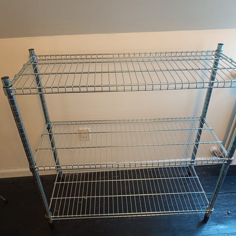 Vejer ikke meget, opbygget med et metalskelet og stofhylder