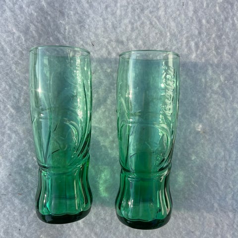 Coca Cola drikkeglas i grønt glas.
