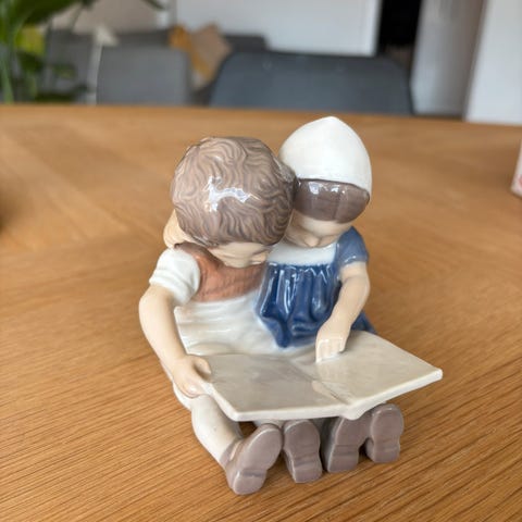 Læsende børn, Bing & Grøndahl Kjøbenhavn, nr. 1567 EA, mærke i porcelæn UBI. H: 10 cm. Fejler intet. Køber betaler selv porto.