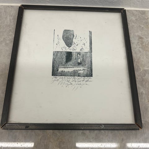 Print af Eike König i flot ramme lavet af Stilling indramning i København. Ydre mål er 74x105cm.
