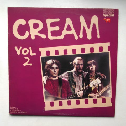 Supergruppen Cream bestående af ERIC CLAPTON - JACK BRUCE og GINGER BAKER. Halvdelen af pladen er indspillet LIVE og resten er studie indspilninger. For mere info : Se billeder
