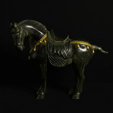 Galster 41 Bronzestatue af Christian den 10. incl. sokkel. Samlet højde 21,5 cm. Sokkellængde 17,5 cm. Sokkelbredde 8 cm. Har stået i mine forældres stue altid. Min far er død og nu sælges den for min mor. Min farfar gik som politimand foran Christian den 10. under 2. verdenskrig, derfor betød den noget for min far.