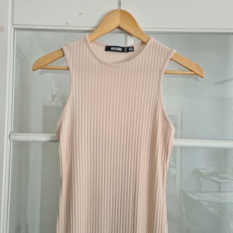 Maxikjole, Missguided, str. M, Nougat/rosa/nude, Ubrugt, Helt ny maxikjole med etager og pufærmer. Farven er nærmest lys nougat eller rosa. Båndet, som ses på billedet, er din garanti for, at kjolen aldrig har været brugt. Længde 131 cm. Brystvidde cirka 104 cm.