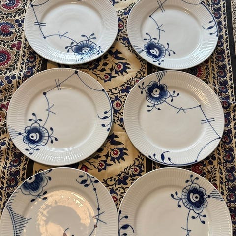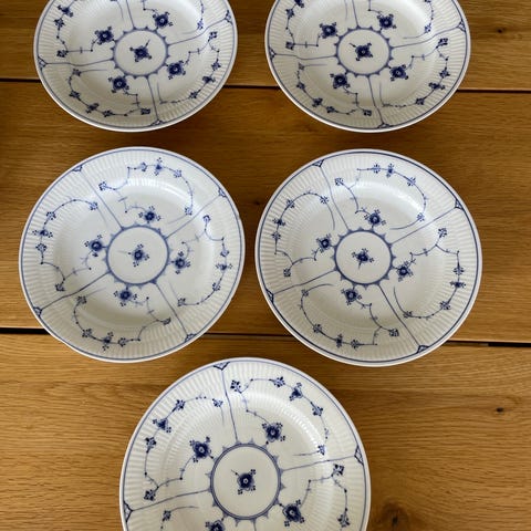 6 stk. middagstallerkener fra Royal Copenhagen i Blå Mega Riflet.