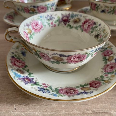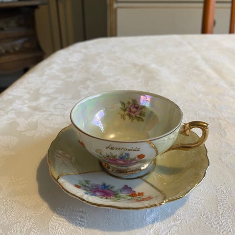 Porcelæn, Engelsk kop med indbygget kagetallerken , Old Foley