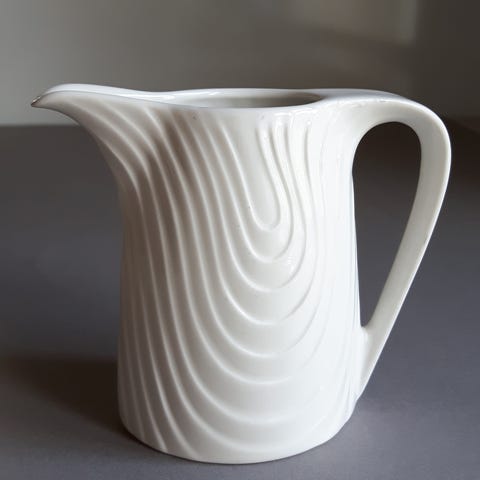 Kanden er hvid, lodret ribbet med dybbrunt låg.