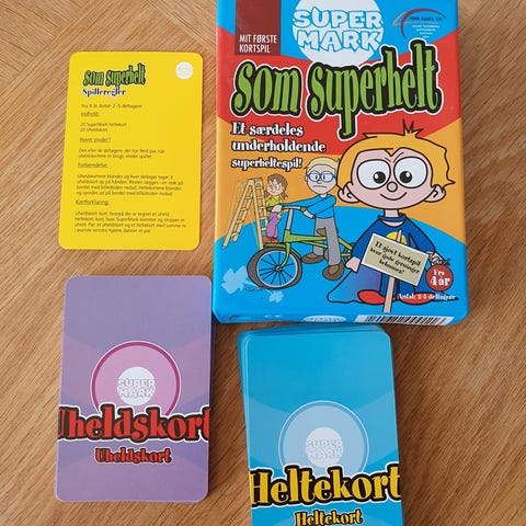 Sjovt kortspil, hvor man får clues til at gætte en superhelt. Ikke brugt og i original indpakning. Nypris: 50 kr. https://www.br.dk/produkter/gaet-en-superhelt/200137213/?gad_source=1&gclid=CjwKCAiAzba9BhBhEiwA7glbasyqduvpIBBEMvwIzY3tRs73PYIml5AntRg8wKlvZsXoNy3yQjGa3xoC-5sQAvD_BwE&gclsrc=aw.ds