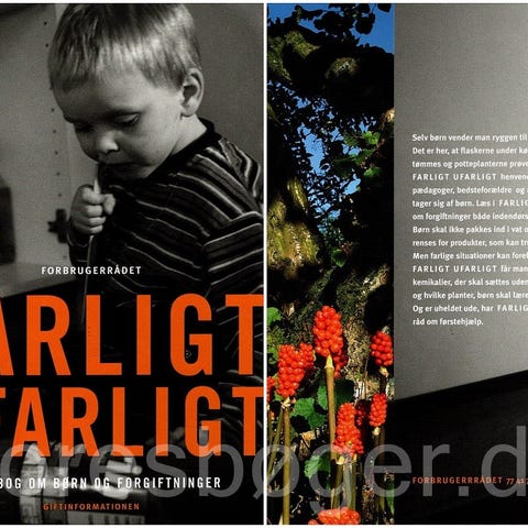 Farligt - ufagligt er en hondbog om forgiftninger. Kan bruges som opslagsværk hvis dit barn spiser eller rører ved f.eks. flaskerne under køkkenbordet