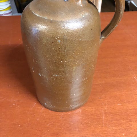 Keramik kande formet som en græskar med låg og hank. Farven er en kombination af blå og orange nuancer. Kanden har en rund, rillede form og velegnet til servering af drikkevarer. Mål: ca. 12 cm i diameter.