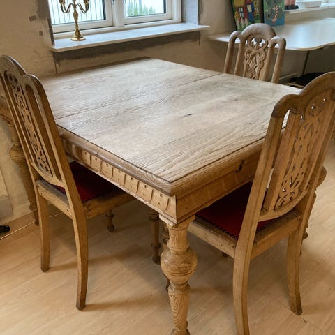 Bordet og stolene fremstår i virkelig flot stand og vil passe godt ind i både klassiske og moderne hjem.