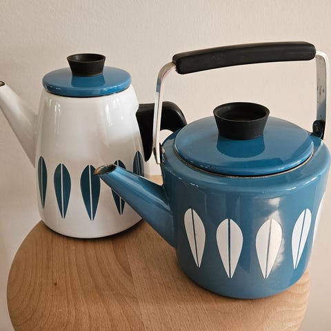 Emalje, Lotus kaffekande, Cathrineholm lift patina, men i pænd stand. Fin kande af Grethe Prytz-Kittelsen. 19 cm høj