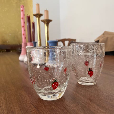 Glas, Mundblæst frugtr6, Mundblæst, 6 stykket frugt 50 kr stykket eller alle 6 for 250. Sendes ikke bananen er solgt