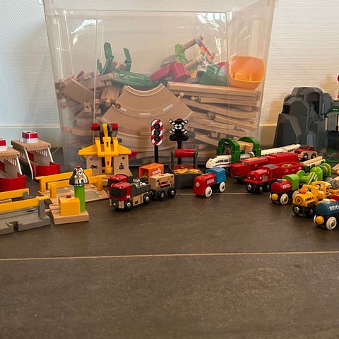 Velholdt Brio togbane fra 2 generationer med rigtig mange dele, indeholder bl.a.: