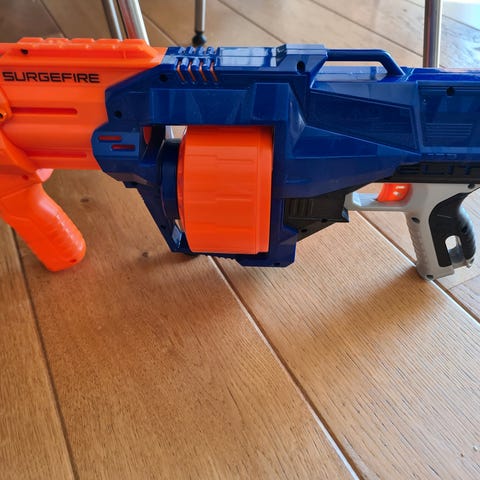 Super sej Nerf gun shockwave. Der følger briller, skydeskive og ekstra pile med. Fra dyr og røgfrit hjem