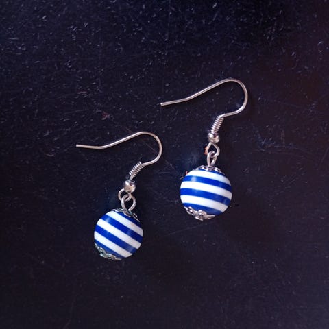 Vintage kugleøreringe med riller, i forsølvet messing,